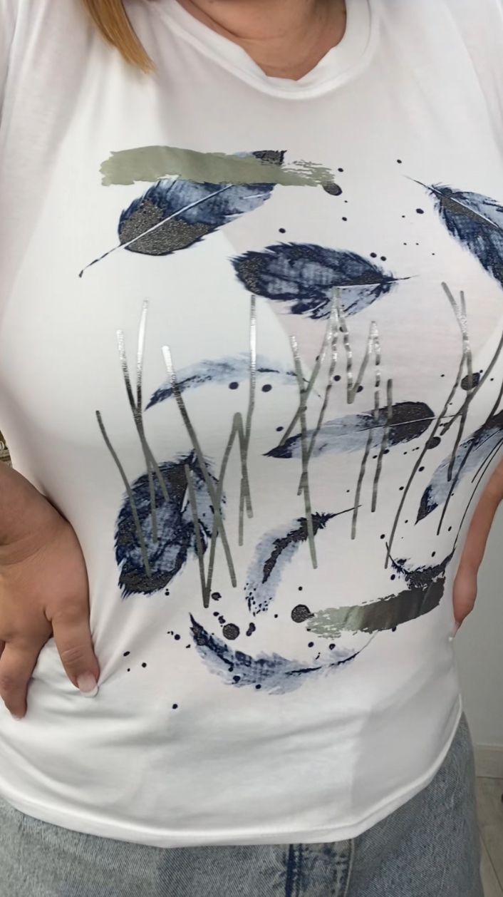 Camiseta manga corta de algodón – Pluma Azúl Talla Pequeña (S – M – L)