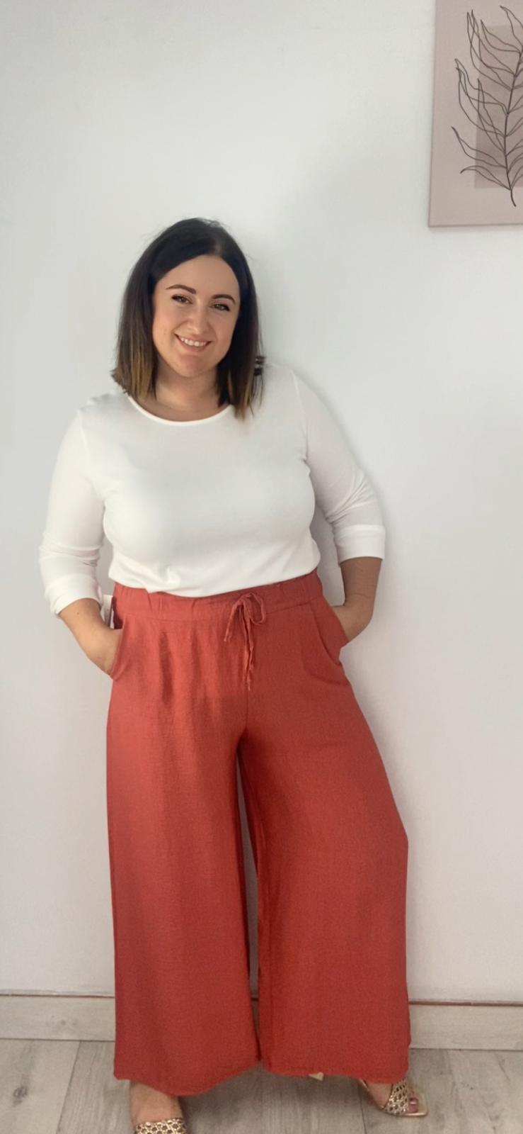 Pantalón de pata ancha con cinturilla elástica color caldera