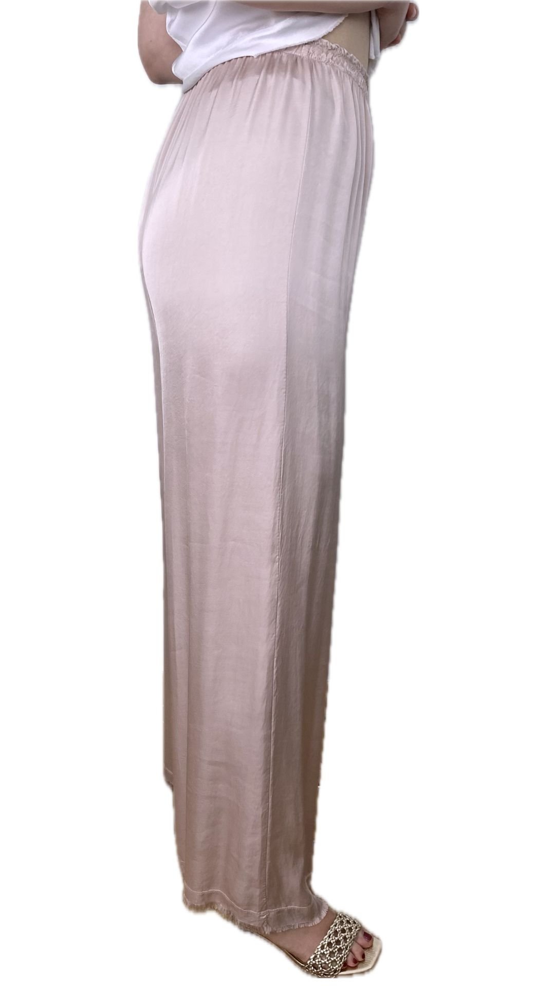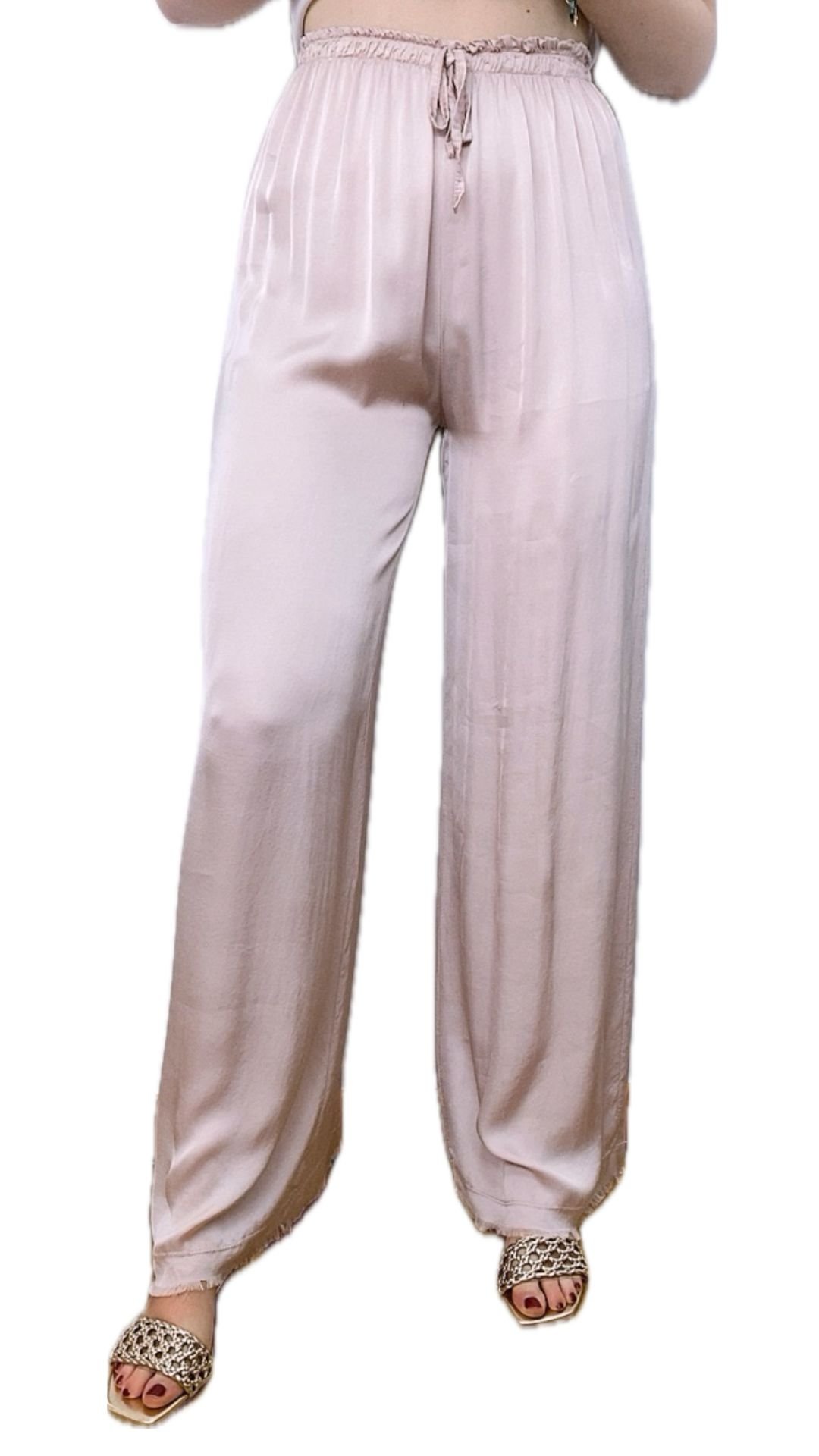 Pantalón Satinado Fluido Ancho Cintura Elástica Tela Viscosa – Pantalón Roma Rosa Nude