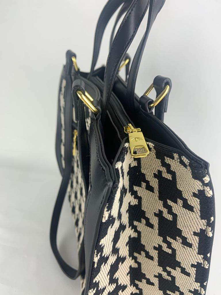 Este bolso tote con patrón de pata de gallo es la combinación perfecta de estilo y funcionalidad. Gran capacidad, asas cómodas y diseño atemporal y sofisticado.