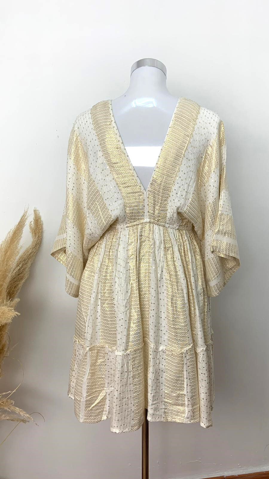 Vestido Boho Corto Chic Color Blanco y Dorado – Vestido Italia
